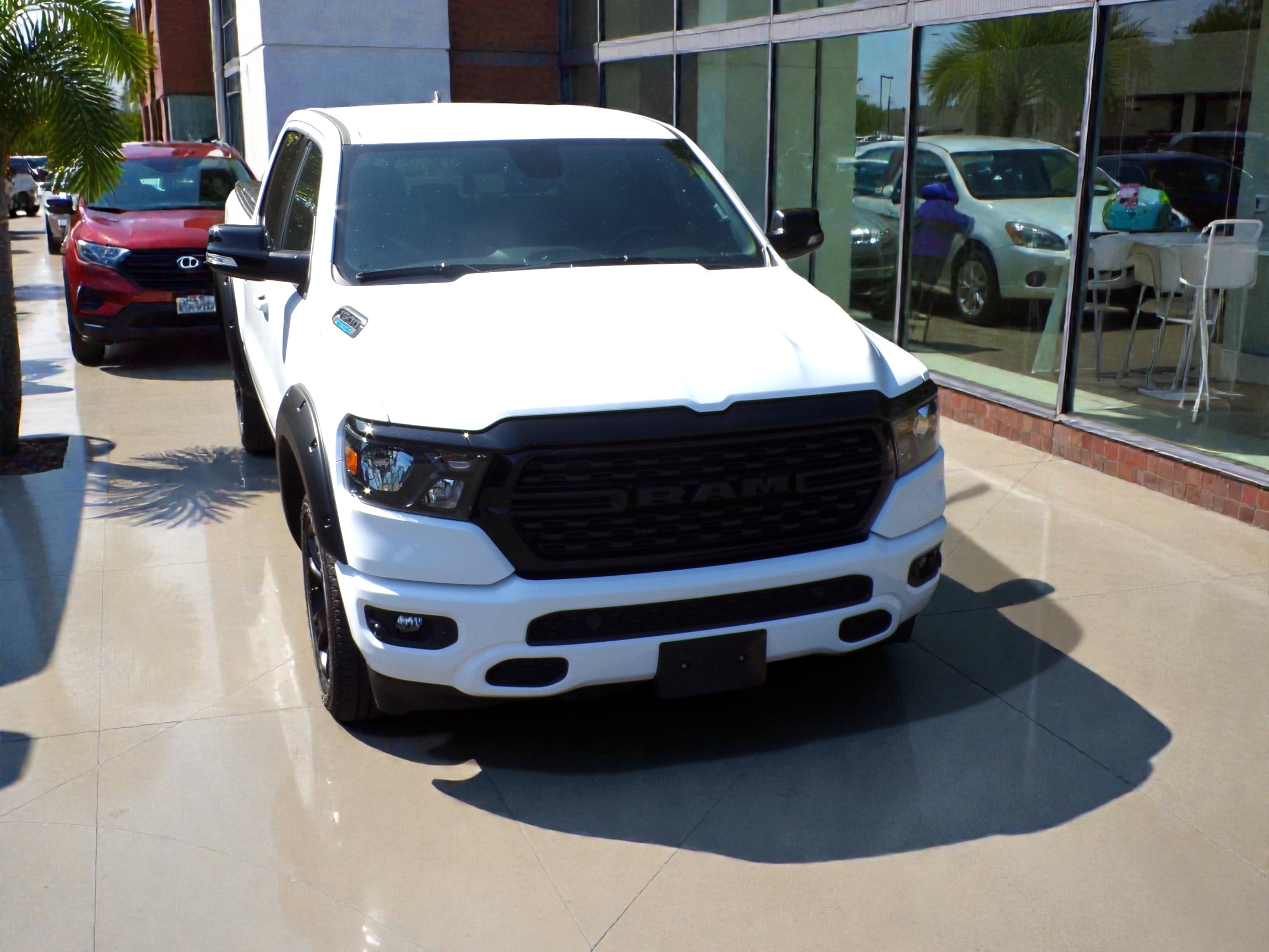 ’23 reg Dodge RAM 1500 3.6L VVT E-Torgue V6 305Bhp Crew Cab 4×4, Big Horn/Lonestar Edition, Bright White with Deluxe Black Fabric Interior, 8-Speed Automatic Transmission, Power Windows, Power Door Locks, Heated Steering Wheel, Heated Front Seats, 8-Way Power Driver’s Seat with Lumbar, Power Folding Door Mirrors, Power Adjustable Foot Pedals, Stop/Start Engine, Push Button Start, REMOTE START, Front & Rear Parking Sensors with Camera, Premium Stereo with 6 Alpine Speakers, U-Connect with 5″ Display, Apple CarPlay, Google Android, Hands-Free Phone and Audio, Integrated Voice Command, Ram Clean Air System, Stability Control, Hill Start Assist, Anti-Lock Brakes, Ready Alert Braking, Speed Control, Trailer Sway Control, 20 inch Black Alloy Wheels with All Season Tyres, Rear Sliding Window, Pick up Tonneau Cover, Spray on Bed Liner, Black Side Steps, Black Wheel Arch Flares, Full Set of Mopar Rubber Floor Mats, Tow Package.