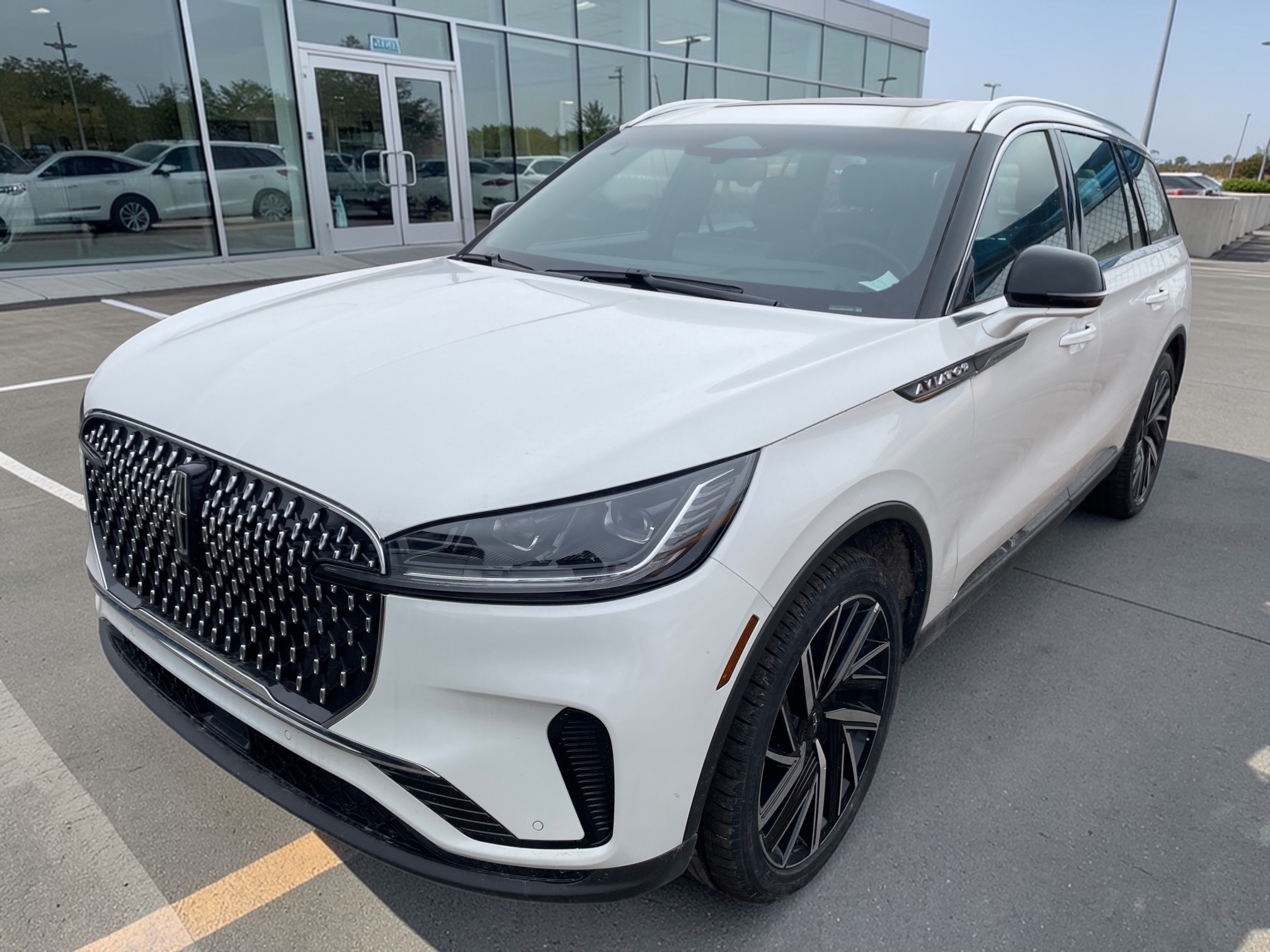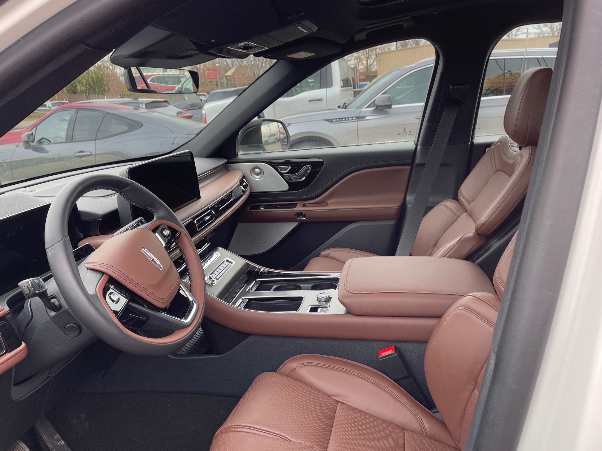 ’26 reg Lincoln Aviator Reserve 3.0L Twin Turbo AWD, 400Bhp, 7 Seater, White Pristine Metallic with Hot Chocolate Luxury Leather Interior, 10 Speed Piano Key Shifter Automatic Transmission, 30-Way Power Motion Activated Driver and Passenger Seats with Lumbar, Heated and Cooled Driver and Passenger Seat, 2nd Row Seats Heated and Cooled, 3rd Row Seats Power Folding, Dual Power Heated, Memory, Turn Signal Door Mirrors, Leather Wrapped Heated, Tilt, Telescopic Steering Wheel with Memory and Mounted Controls, Power Tailgate, Push Button Start, REMOTE START, Stop/Start System, PANORAMIC VISTA ROOF With Power Shade, Quad Zone Climate Control, Adaptive Cruise Control, Reverse Camera with Sensors, Front/Side/Rear View Camera, Advanced Heads-Up Display, Power Windows, Power Door Locks, Heated Windshield Park,