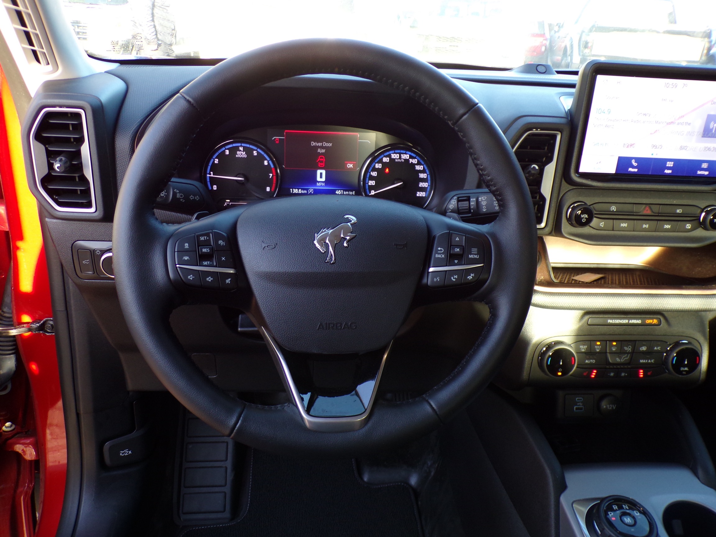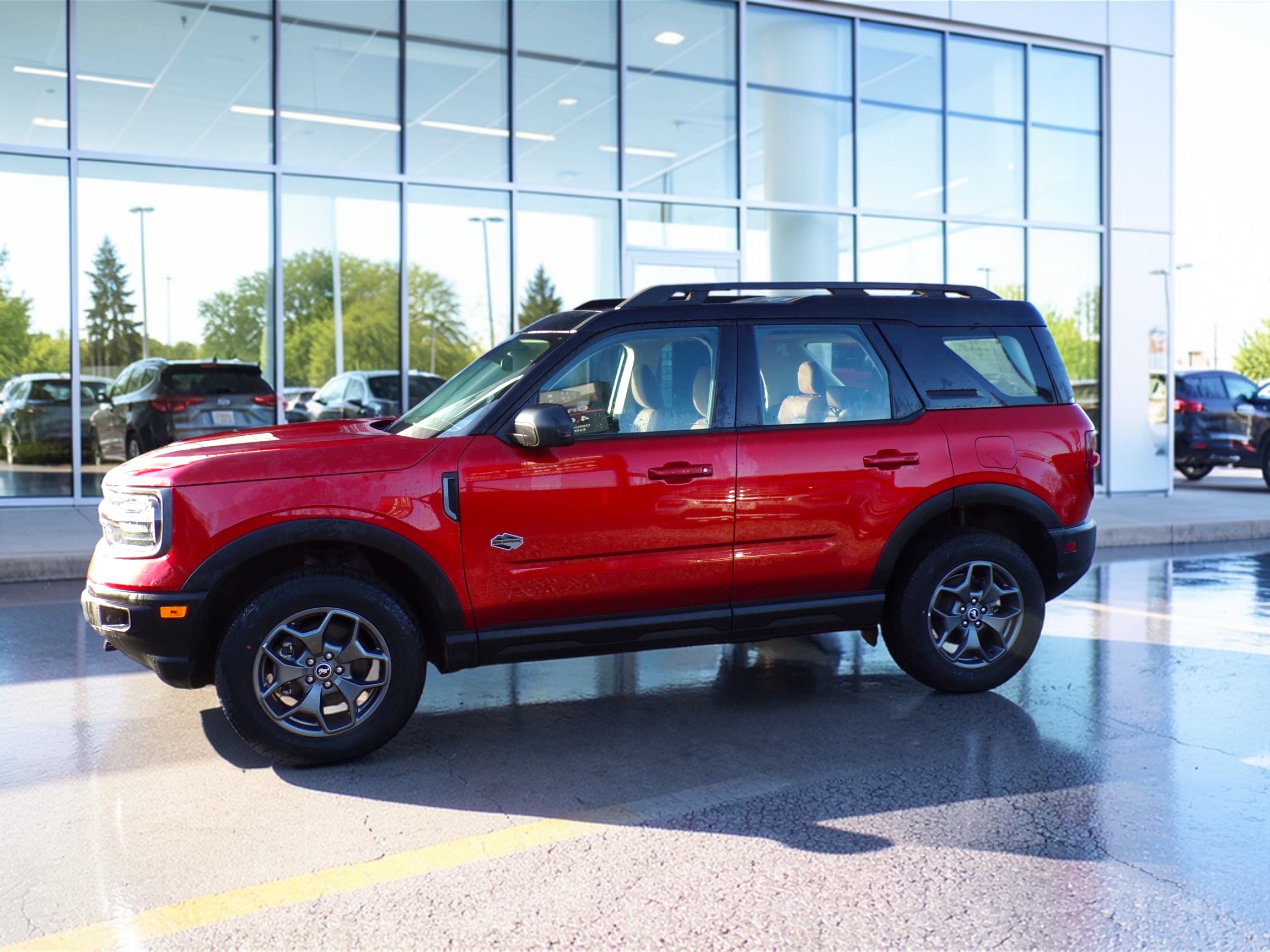 75 reg Ford Bronco Sport Wildtrak 2.0L Ecoboost 4×4, 246Bhp, Hot Pepper Red with Ebony/ Brown Roast Leather Interior, 8 Speed Automatic Transmission with Paddle Shift, Power Windows, Power Door Locks, Power/Heated/Auto Fold Door Mirrors, 8-Way Power/Heated Drivers Seat with Recline and Lumbar, Heated Passenger Seat, Leather Tilt/Telescopic Steering Wheel with Mounted Controls, Power Sunroof with Power Shade, Keyless Entry, Push Button Start, REMOTE START, Stop/Start System, Adaptive Speed Control, Lane Departure Warning, Blis with Radar Detection, Lane Keeping Aid, Hill Launch Assist, Collision Mitigation, ABS Brakes, Roll Stability Control, Load Management System, Off Road Suspension, Terrain Management System, Trailer Sway control, Twin Rear Clutch (The unit has two clutch packs that control each rear wheel independently, allowing increased 4×4 performance in low traction surfaces, while allowing vehicle propulsion to be delivered by a single rear wheel even when the other three wheels have no traction) Reverse Park Aid with Camera, Front 360 Degree Camera, Power Tailgate, Bang & Olufsen Sound System with 10 Speakers, Sync III with 8inch Touchscreen, Apple CarPlay, Google Android, World Wide Navigation through Smartphone, USB Charging Points, Wireless Charging Pad, 4G WiFi, Dual Zone Automatic Climate Control, Securicode Keyless Keypad, Black Roof with Black Side Rails, Automatic LED Headlamps, Rear Fog Lamp, 17inch Aluminium wheel with All Terrain Tyres, Complete Underbody Protection, Isofix Hard Point Attachment, Quasi Dual Exhaust System, Digital Speedometer in MPH/KPH, Full Set of Carpet Mats, 12 month Road Tax £360.00. Finance Available (Business & Personal) 12 month Fully comprehensive Warranty. V5c present, Date of 1st registration 24th December 2025