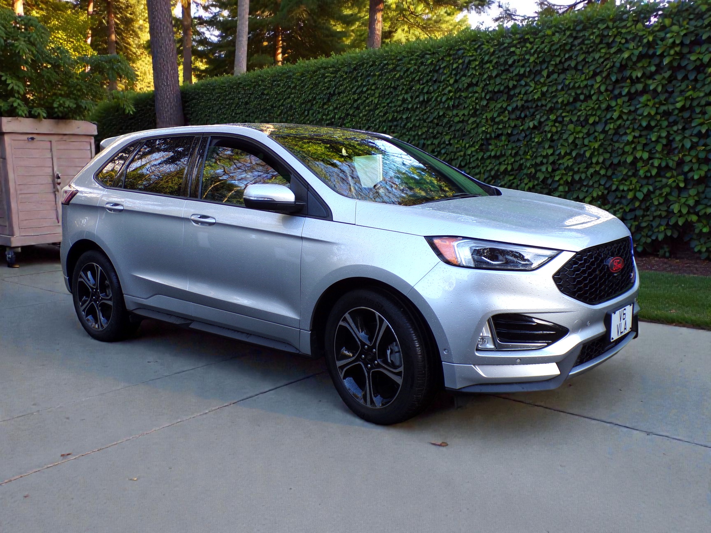 2019 Ford Edge ST 2.7L V6 AWD, 335Bhp, Iconic Silver Metallic with Black Leather Interior, 8 Speed Automatic Transmission, Power 10 Way Driver and Passenger Seat with Driver Memory, Heated and Cooled Front Seats, Heated Rear Seats, Panoramic Vista Roof, Leather Wrapped Heated Steering Wheel with Cruise and Audio Controls, Power Windows, Power Heated Door Mirrors, Adaptive Cruise Control, Blind Spot Monitoring, Lane Keeping Assist, Pre-Collision Warning, Enhanced Park Assist, Evasive Steering Assist, Rear View Camera with Reverse Sensors, Push Button Start, Keyless Entry, Dual Zone Automatic Climate Control, B & O Sound System with 12 Speakers and CD Player, Sync 3 with 8inch Touch Screen, Apple CarPlay, Google Android, 4G WiFi, Navigation through CarPlay Plug n Play, Wireless Charging Pad, USB Ports, Auto Start/Stop, Trailer Tow Package, Ford Performance Tuned Suspension, 18inch Black Aluminium Wheels, Privacy Glass, Power Trunk Lid, Trunk Security Screen, Full set of Original carpet mats (Never been used), 2 sets of Keys, Digital Speedometer, Dual Exhaust Tips, Catch Oil Can fitted, K & N Air Filter Fitted, Imported new in 2020, Owned by an American Car Enthusiast, Full Service History, comes with the registration number V6 VLA. 7587 Miles ONLY from new. Immaculate inside and Outside.